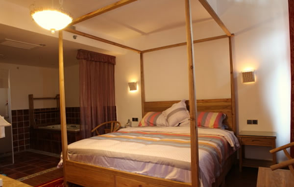 公館擁有各種特色客房35套(其中溫泉SPA客房28套、閣樓復式套間4套,浪波水床間4個),還有茶飲就餐區(qū)、自然大講堂、韓蒸時代汗蒸館、空中花園咖啡屋、創(chuàng)意棋牌室、高檔禮品區(qū)及連鎖粗糧小吃鋪等配套設施與項目。公館客房不僅擁有高星級酒店的舒適度,還有濃郁的“深山溪畔快活老街——溪布街”的地域街區(qū)文化特色及原生氣息的家居布設。