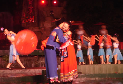 姑娘出嫁,為女人一生中最大的喜事,本應(yīng)充滿幸福、歡樂的氣氛。然而,舊時湘西、湘南、鄂西、川西(成都等地)、黔東(銅仁、凱里一帶)諸地,卻流行著一種與之完全相反情調(diào)的古老婚俗——“哭嫁”。也就是在姑娘“出閣”之前,不但新娘本人哭得很傷心,像淚人一般;而且,新娘的母親、姐妹以及姑媽、姨媽、舅媽及其他交往較多的女友,都要陪著新娘哭。湘西土家族哭嫁的風(fēng)俗尤為普遍、濃厚,不但哭嫁的時間較長(少則十來天,多達(dá)個把月),而且哭嫁歌也保存得古樸、完整。 姑娘出嫁為什么要哭?哪有那么多的東西可哭?這是一種蘊(yùn)含甚為豐厚的人生禮俗,也是一種饒有興趣的婚俗事象。 俗話悅:“人不傷心不落淚!惫媚锍黾拗砸,是因為在舊式婚姻制度下,女孩(尤其是勞苦大眾家庭的女孩)總是作為犧牲品“拋”(賣)給夫家的,她們的身心受到極大傷害。因此,湘西等地的女孩在出嫁之前要哭泣,要呼號,哭嫁歌就是感情發(fā)泄的最好表現(xiàn)方式。 哭嫁的源起 哭嫁的風(fēng)俗,不知道起源于什么時候。戰(zhàn)國時期,趙國的公主嫁到燕國去作王后,她的母親趙太后在臨別時"持其踵,為之泣,祝曰,必勿使返。"大約就是后來長盛不衰的哭嫁風(fēng)俗的濫觴了。 這種風(fēng)俗,直至清末還盛行于四川農(nóng)村中,隨地區(qū)變化而大同小異。解放前,聽老人們說,早些時候,沒有嫁而不哭的人家。如果出現(xiàn)嫁而不哭的姑娘,也會被鄰里看作沒有教養(yǎng)的人,傳為笑柄;相傳有出嫁姑娘不哭而遭母親責(zé)打的事,這位母親當(dāng)然算得上是入流導(dǎo)演了。 舊時宣講故事中,有花轎臨門,父親強(qiáng)令哭《迎風(fēng)罵媒歌》的情節(jié),可知哭嫁是有歌詞的,帶有表演性質(zhì),原是用來渲染氣氛,以悲襯喜;不過,因為婚姻是包辦的,真哭真罵的也不會少。 抗日戰(zhàn)爭后期,風(fēng)氣較開,哭嫁之風(fēng)已不盛行,而老人們卻還在津津樂道,哭的方式是,從婚期前一個月的首日起,入黃昏,姑娘訴哭約一個小時,其聲嗚嗚。十天以后,她的母親加入"陪哭";又十天以后,她的祖母加入陪哭。這家沒有諸姑姊妹,人們說,如果有的話,也應(yīng)當(dāng)加入陪哭行列的。 哭嫁在川西叫"坐堂"。清代吉道人《味蔗軒隨筆·坐堂詞》云:"婚姻之禮,各省風(fēng)俗不同。然酌禮準(zhǔn)情,各省亦大同小異。凡男家娶婦先賦之詩,謂之'催妝';女家親串頌女之詞,謂之'坐堂'。坐堂者,女當(dāng)喜期將近之先數(shù)夕,其諸姑伯姊,置酒為女祖餞,各述吉祥之詞,以為頌美,女則申己之意以答。女左右更有少女,則隨而嫻習(xí)者也。其詞要多鄙俚,然有音韻凄清,風(fēng)格遒勁,如古歌古謠者。羅江明府蔡,微服巡查鄉(xiāng)里,一日行至某處,值有女子歸,諸娣姒咸以諛詞頌女,女申意以答。忽風(fēng)吹句入耳,詞曰:'鳳凰落在桌子上,哪個女兒肯離娘'。一字一轉(zhuǎn),音韻凄其,誰謂天籟之鳴,不在愚夫愚婦耶!"云云。吉道人姓周名際唐,成都人。吉道人記得明明白白,可惜他只記了一句哭嫁詞,難窺全貌。好在舊時坊間叢刻中有《訓(xùn)女哭嫁》一種,可見一斑。這本小書的目錄有《閨聲哭》、《娘訓(xùn)女》、《嫂哭妹》、《哭爹媽》、《哭哥嫂》、《花轎到屋哭》、《哭叔爺》、《哭兄弟》、《哭外公外婆》、《哭舅爺》、《拜香火哭》等等,編次有點凌亂,似乎隨手所記,未經(jīng)文人之手。遙想《詩》十五國風(fēng)未刪之時,大約也不過如此吧! 閨聲哭 娘聽后園鳥雀驚,要聽房中女兒聲。 我娘當(dāng)門苦葛藤,手攀苦葛訴苦情。 我娘苦情苦過了,女兒苦情才起根。 ............ 桔子開花葉子青,陽雀開聲我開聲。 新打銅盆才裝水,新打剪刀兩面青。 娘不開口我開口,娘不開聲我開聲。 當(dāng)門一根木蓮樹,目連樹上掛卷經(jīng)。 一本經(jīng)書背完了,未見我娘來開聲。 虧了我娘睡得穩(wěn),爹媽眼淚貴如金。 哭爹媽 月亮彎彎照華堂,女兒開言叫爹娘。 父母養(yǎng)兒空指望,如似南柯夢一場。 一尺五寸把兒養(yǎng),移干就濕苦非常。 ............ 勞心費(fèi)力成虛恍,枉自爹娘苦一場。 哭兄弟 黑漆茶盤烏木頭,姐姐離娘弟不留。 留到姐姐吃你飯,留到姐姐穿你衣。 兄弟當(dāng)家掙家忙,嫁了姐姐買地方。 上頭買齊潼川府,下頭買齊遂寧鄉(xiāng)。 ............ 這個本子所記是川北的歌詞,以前所見的是川南,吉道人所記的是川西,川東,大約也不會大異的。遺憾的是,該書所記哭嫁詞雖有"只怨媒人莫良心"等語,卻沒有列出"罵媒專目,大約是怕媒人太難堪了吧! 其實,罵媒是哭嫁中必不可少的節(jié)目,也是最具反抗色彩的哭嫁歌詞。舊社會,婦女無婚姻自由可言,由于"三從四德"的束縛,平時對于自己的終身大事幾乎不能置一詞,全由媒人和父母擺布;因此,這登花轎之前的"罵媒",便是難得的發(fā)泄機(jī)會。這早已反映在戲曲和民間說唱等藝術(shù)之中。 以前,川劇《柳蔭記》有《英臺罵媒》一折,英臺罵媒人,言詞激烈,聲色俱厲,充分表現(xiàn)了祝英臺剛烈的性格和反封建精神。她罵道:"提媒婆,更恨她,胡言亂語嘴喳喳......唯愿你,房屋遭火化,田園水推沙。"但這場戲現(xiàn)在卻被刪掉了,五六十年代還有的,全國第一屆戲曲會演的川劇《柳蔭記》也有這一折,是陳書舫演的祝英臺,得了一等獎,F(xiàn)在城里人大約以為媒婆不必罵了,但偏遠(yuǎn)地區(qū),媒婆似乎還在肆