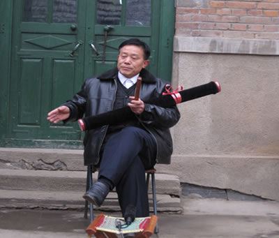 張家界民間藝人正在打漁鼓筒