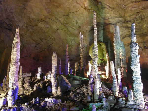 黃龍洞現已探明的洞底總面積10萬平方米,全長7.5公里,垂直高度140米。洞體共分四層,整個洞內洞中有洞,洞中有河,石筍、石柱、石鐘乳各種洞穴奇觀琳瑯滿目,美不勝收。據專家考證,大約3.8億年前,黃龍洞地區(qū)是一片汪洋大海,沉積了可溶性強的石灰?guī)r和白云巖地層,經過漫長年代開始孕育洞穴,直到6500萬年前地殼抬升,出現了干溶洞,然后經巖溶和水流作用,便形成了今日地下奇觀。中國地質部70多位專家的考察結論則是:黃龍洞規(guī)模之多、內容之全、景色之美幾乎包攬了《洞穴學》的全部內容,是世界溶洞的“全能冠軍”。