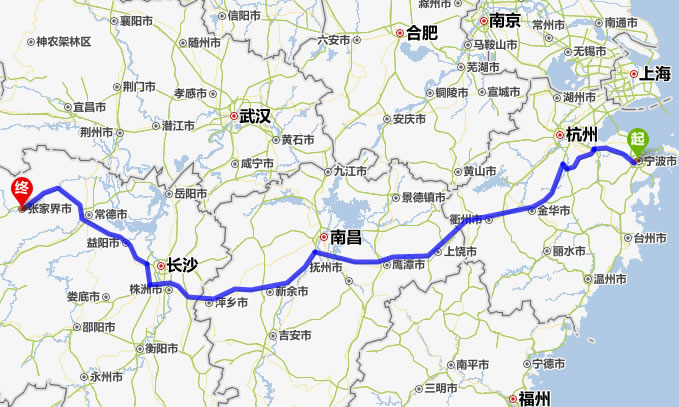 現(xiàn)在位置:張家界旅行社->交通指南->自駕車(chē)路線 -> 寧波到張家界旅游自駕車(chē)線路,寧波去張家界自己開(kāi)車(chē)要多長(zhǎng)時(shí)間,有多少公里