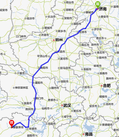 濟(jì)南去張家界自駕車自助游線路圖全程高速):