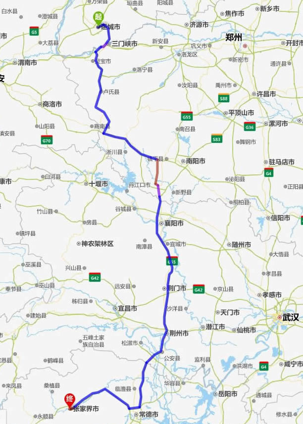 運(yùn)城去張家界自駕車(chē)自助游線路圖全程高速):