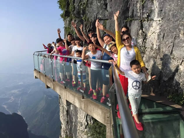 【張家界大峽谷玻璃橋】號稱世界最長、最高的全透明玻璃橋,玻璃橋總長430米、寬6米,橋面距谷底約300米,可站800人。橋面全部采用透明玻璃鋪設(shè),橋中心有全球最高的蹦極臺,整個工程無鋼筋支架,是一種全玻璃結(jié)構(gòu)的橋梁。玻璃橋建成后,將成為世界首座斜拉式高山峽谷玻璃橋;并創(chuàng)下世界最高最長玻璃橋、首次使用新型復(fù)合材料建造橋梁等多項(xiàng)世界之最!